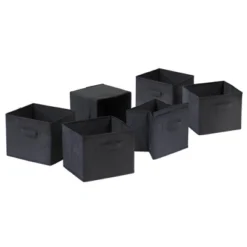 Combine storage with elegant interior design when you add this Timothy Nine-Piece Storage Shelf Set from Winsome to your home. This storage shelf set features a black four-by-two eight-compartment storage shelf, plus six chocolate-brown fabric baskets – perfect for arranging anything from boots to books. The black hardwood design accents your space with elegant color; the fabric baskets help you stay organized, and can easily be tucked away for space-saving convenience. Fill this storage shelf with miscellaneous supplies and decorate the top with anything from plants to pottery to bring functional flair to your interior decor.