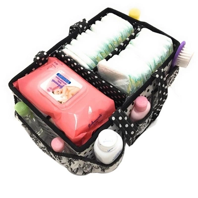 - Large enough for all baby necessities. Caddy measures 12.5″ long by 8.5″ wide by 6.25″ high and has flexible handles that each measure 1″ wide and 15″ long from end to end with a soft body and a removable T-separator on the inside.