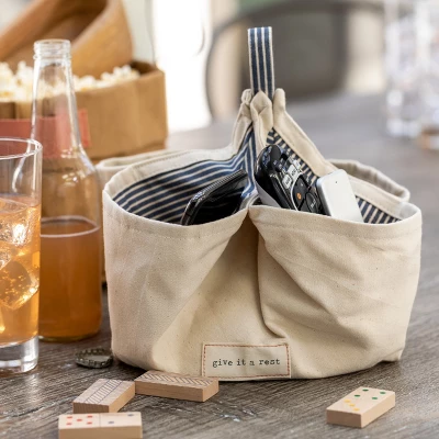 - Encourage positivity and happy family bonding with household items that celebrate the joy of togetherness; Cream phone caddy with blue stripe accents is a cute and effective household tool featuring the sentiment reading “Give it a rest”