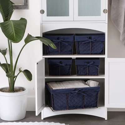 Design Imports Set Of 5 Rustic Bronze Chicken Wire French Blue Liner Baskets