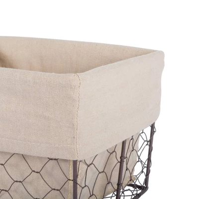 - Machine washable, removable fabric liners will maintain size and shape when washed. Basket liner is constructed of a Poly-Cotton blend. Metal baskets can be wiped with a soft cloth.
