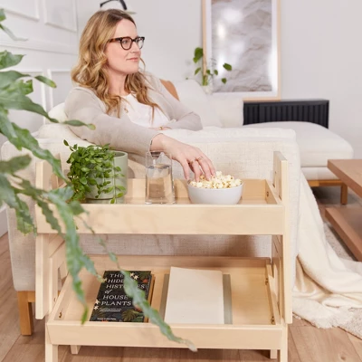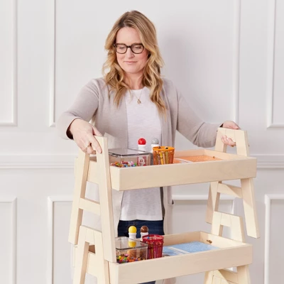 Store and display books, shoes, or personal belongings with the ECR4Kids Adjustable Stacking Shelf. The adaptable storage tray is designed to be used independently or inter-stacked with up to three additional units for a vertical space-saving storage solution. The tray is adjustable with the ability to be set flat or at a forward tilt. The full edge perimeter keeps pens, art and crafts, and school supplies from rolling off the tilted shelf. The multipurpose storage is ideal for use in a living room as an end table for coffee table books and magazines, or an open-faced book display in a bedroom or dorm room for easy access to literature. Teachers can prepare redundant shelves for students in the classroom for collaboration tables, then easily collect and stack them for a quick clean up. The bookcase is constructed from durable rubberwood with a tough UV lacquer that seals the wood surface and resists scratching. A UV inhibitor makes furniture resistant to ultraviolet light and yellowing. Natural rubberwood is extremely durable and will hold up to everyday use at school or in the home. The shelf comes in a variety of finishes to mix and match; additional shelves are sold separately.