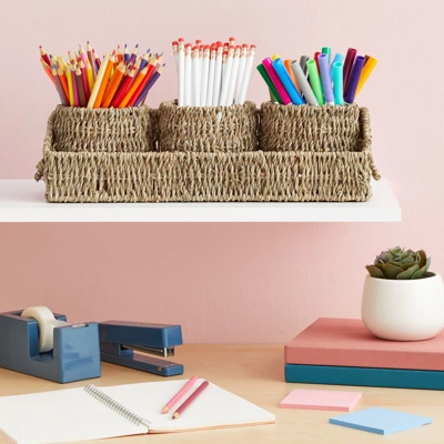 - Multi-Purpose: These seagrass baskets fit inside of the rectangular tray, allowing for convenient and easy storage when not in use; ideal for drawers, shelves, desks, laundry and kitchen storage