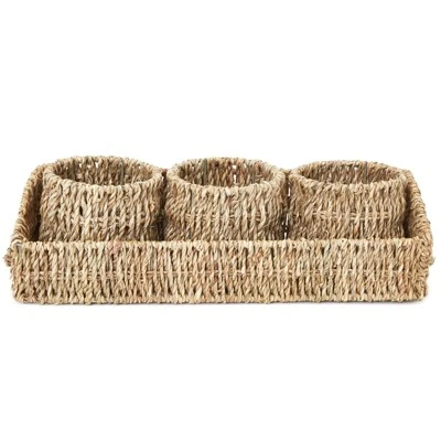 - Dimensions: Each utensil holder for party decor measures 4 x 4 x 4 inches; the seagrass tray measures 15 x 5 x 3.75 inches