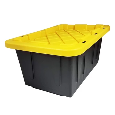 Whether you need to pack away camping gear, sports equipment, blankets, or just your items, rely on this 2-pack of HOMZ Durabilt 15-Gallon Heavy-Duty Storage Container with Snap Lids to keep your home neat and organized.These storage tubs are constructed from impact-proof, heavy-duty plastic that can withstand ongoing use. The 15-gallon storage capacity creates an ideal storage system for storing tools, sports gear, camping equipment, clothing, and holiday decorations. Keep your cherished items pristine and shielded from external elements. The reliable snap lids that seal the deal on protection provide a steadfast barrier against dust, moisture, and unwanted intrusions. Innovatively designed with 6 hasp areas, these storage boxes guarantee that your belongings remain secure. Attach tie-down straps or locks effortlessly, adding an extra layer of security to your supplies, collectibles, and more.Embrace the art of efficient space utilization with these stackable wonders. Transform your cluttered spaces into a harmonious haven by utilizing vertical storage. When not in use, nest them compactly to optimize your storage area.HOMZ Durabilt storage totes are ideal for garages, craft rooms, toy rooms, and anywhere else your home could benefit from simple storage solutions. Create a clutter-free home with this 2-pack of HOMZ Durabilt 15-Gallon Heavy-Duty Holiday Storage Tote.