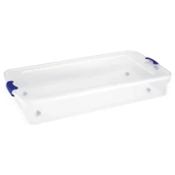 - Ergonomic latching handles lock to secure the lid providing a comfortable grip for easy carrying