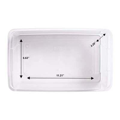 - SEE-THROUGH: Constructed of durable, clear plastic to quickly identify the contents inside; Interior (L x W x H): 6.63 x 11.21 x 4.28 inches; Exterior (L x W x H): 8.25 x 13.63 x 4.75 inches