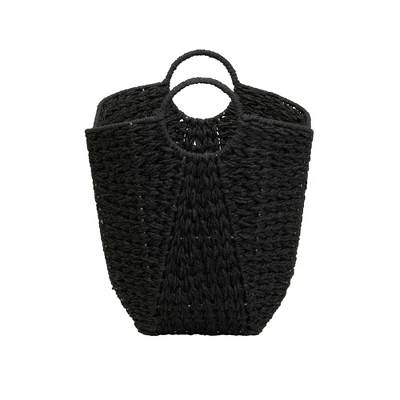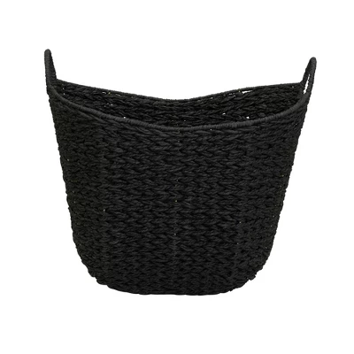 This Tall Scoop Wicker Basket from Household Essentials is a stylish and smart storage solution for any living room, bedroom, bathroom, craft room, office and more. Use to store magazines and books, extra throw blanket or pillow, pet toys or accessories, craft supplies and more. This large wicker basket is made of soft, hand-braided paper rope over a sturdy metal frame, so the basket stands securely and keeps its shape. The basket has a tapered shape with a wide opening and sides that dip low for a modern look and easy access to the basket’s contents. The basket’s natural materials are on trend and a classic piece that fits into almost any home’s decor style. Please note that color and texture may vary from photos because each piece is handwoven from natural fibers.