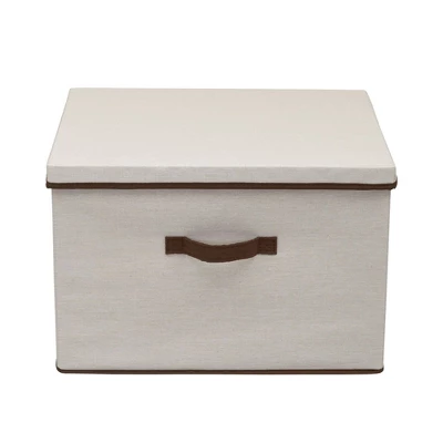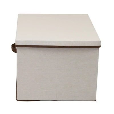 This Wide Storage Box with Lid from Household Essentials provide limitless organizational functionality. Their timeless design creates an aesthetically pleasing alternative for plastic totes or old shoebox makeshift storage solutions designed to hide clutter. Ideal in any home storage application, these boxes are perfect for bedrooms (sheets, pillowcases), bathrooms (towels, washcloths, toiletries), attics (collectibles, antiques), home offices (office supplies, craft supplies), or anywhere else clutter tends to collect. The storage boxes are made of a poly-blend linen and is reinforced with solid siding for added stability, durability, and stackability. Each box features a single decorative handle for easy, one-handed access at all times. These wide storage boxes blend neatly with any home decor and certainly don’t have to be relegated to out-of-sight areas. When not in use, the box folds flat and can be tucked away easily without taking up valuable excess space. Attractive and functional, these Wide Storage Boxes with Lid are the perfect solution for your home’s organizational challenges.