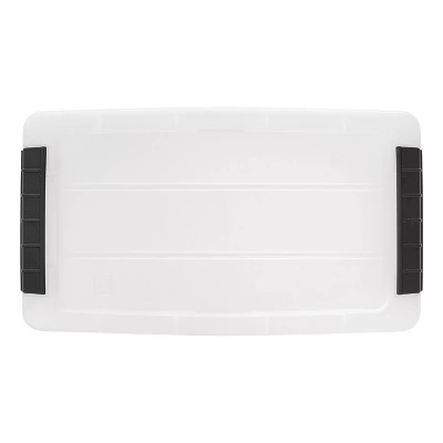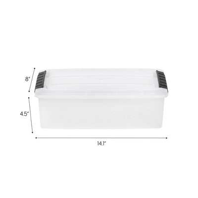 The modular storage system built to meet your needs. This 6 QT Stack & Pullâ„¢ storage box easily stores shoes, craft supplies, office supplies, and more. Buckle up latches keep the lid securely in place, and the built-in handle makes it easy to pull the box off of a shelf. Stacks neatly with other units in the Stack & Pullâ„¢ series. Available in multiple colors.