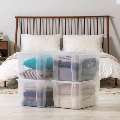 - Hinged lid for quick, easy access to contents Stackable for maximum storage