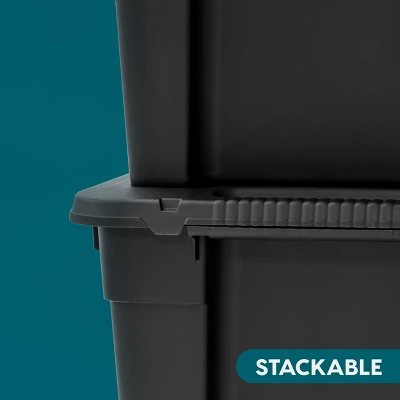 The Store-It-All totes is great for keeping your dorm, closet, or garage organized. The lid is designed for a bungee cord or strap to keep the tote secure while in a vehicle trunk or on a shelf. See other items in this series to create a modular storage system: this bin can be stacked with the 3-gallon, 5 gallon and 19-gallon Store-It-All Totes. Made in USA.
