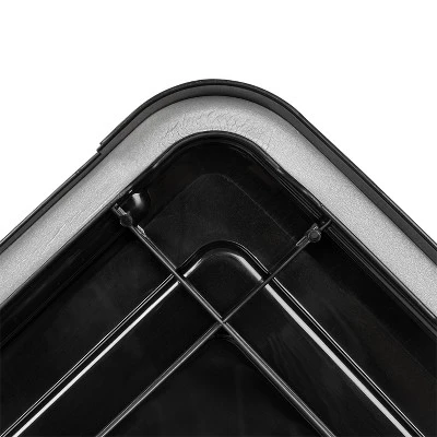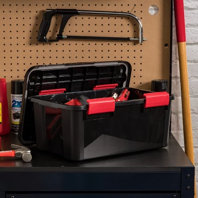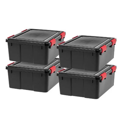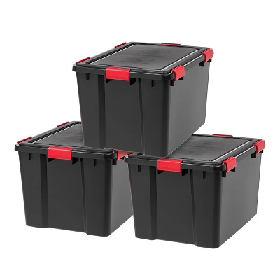Store your favorite keepsakes and other valuables in this IRIS 19 Quart WeatherPro™ heavy-duty storage tote. The WeatherPro™ seal on the storage bin lid protects contents by keeping air and moisture out. Safely store up to 25 pounds of material, such as crafting supplies, photos, and movies in these small storage containers. The grooves in the reinforced lids means these 19 quart stackable totes with lids can be placed on top of the 19 and 36 quart IRIS tote boxes to save space, stack two of the 6.5 quart boxes securely on top of the 19 quart IRIS tote, or stack two 19 quart totes on top of the 41, 62, 74, or 103 quart totes to create a customized storage solution. WeatherPro™ totes are made of durable economical repurposed raw material. See other items in this family: 6.5 quart, 19 quart, 30 quart, 36 quart, 41 quart, 46 quart, 62 quart, 74 quart, and 103 quart WeatherPro™ heavy-duty storage totes. Set of 6. Model: UCB-SS