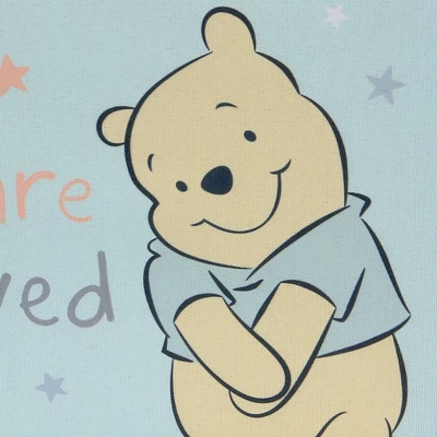 Winnie the Pooh is one of Disney’s most loved characters. Our sturdy and durable foldable storage features a cream-colored Pooh on a light blue background. Pooh is 8 ¼” tall, wearing his favorite shirt, and standing in an adorable pose. The words “you are so loved” are printed in gray, blue and peach along with colorful stars. There are two side handles for easy carrying. The storage container is 12 ½” x 11” x 9”.