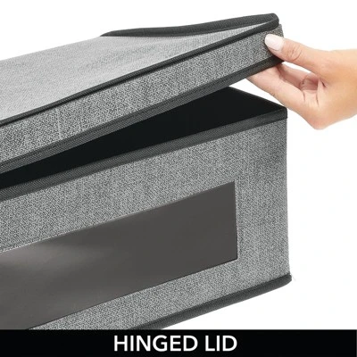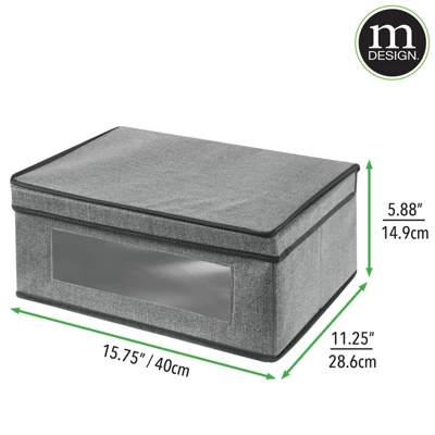 This Fabric Storage Box by mDesign is perfect for keeping your closets organized and clutter-free. It offers roomy space for storing out-of-season clothing, shoes, purses, scarves, bedding, linens and more. The clear front window lets you see the contents without having to open the attached lid. Use them side-by-side or stack them to maximize the storage space inside closets anywhere around the home like bedrooms, mudrooms, entryways, craft rooms and more.