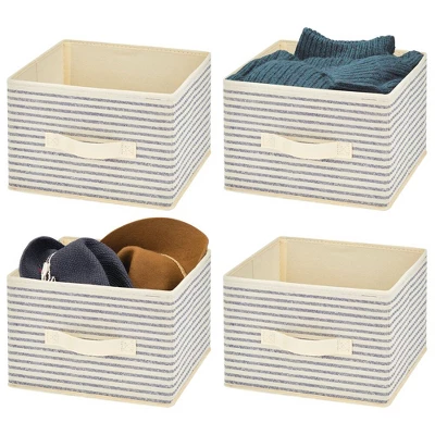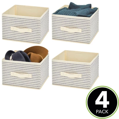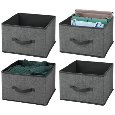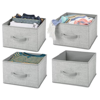 These Fabric Storage Boxes by mDesign are perfect for keeping your closets organized and clutter-free. They offer roomy space for storing blankets, sweaters, out-of-season clothing, hats, swimming gear and other necessities. The open top makes it easy to see what’s inside and quickly grab what you need. The attached front handle makes moving on and off shelves easy in any bedroom closet, laundry area or other storage space in your home.