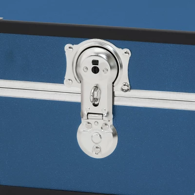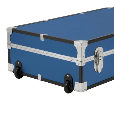 Tuck away bulky linens, holiday decorations, keepsakes, or seasonal clothing in the Seward Under the Bed 31″ Trunk. This trunk features classic nickel hardware with black binding and nickel corner guards. The dual lock-down latches and tongue and groove closure help keep dust and moisture out. The push-button center latch has an optional locking feature (includes keys). For additional security, add a padlock. Wheels and a side handle make this trunk easy to move and store.Â