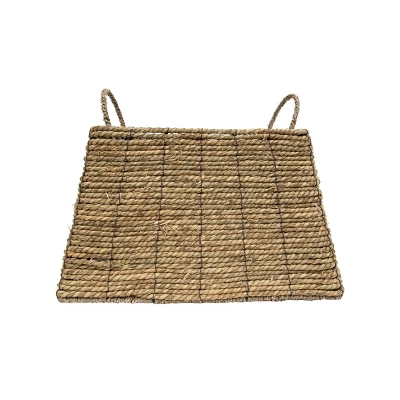 Unique in shape, a handwoven basket crafted from natural seagrass by artisans using traditional techniques. The grasses are intricately woven around a metal structure to create a unique tapered square shape and finished with sturdy handles to allow you to lift when full. This is a great basket for stylish organization as well as a decorative accent to infuse some natural boho elements to your space.