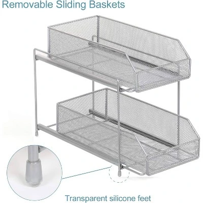 Compared to the ordinary 2 tier sliding basket organizer, it features upgraded sliding rail and non-slip pads, which makes it more durable and stable.