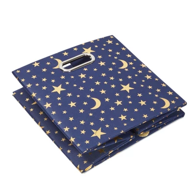 Maximize your storage space and easily organize your home with our set of 4 foldable organizer cubes. Each cube bin is made from foldable fabric and measures 11 inches. The decorative storage bins feature gold moon and stars printed throughout that will elevate your celestial home decor while ensuring clothing, shoes, magazines, toys, and small household items organized.