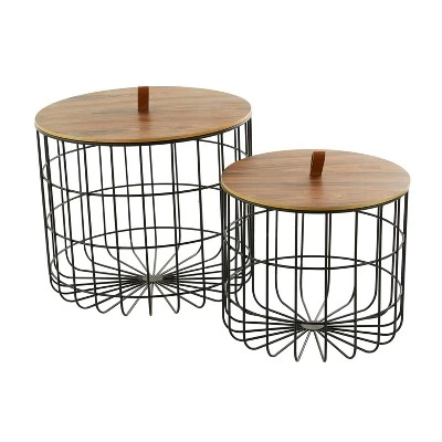 - •A black body frame highlight the natural wood brown polished lid of each of these wire storage baskets
