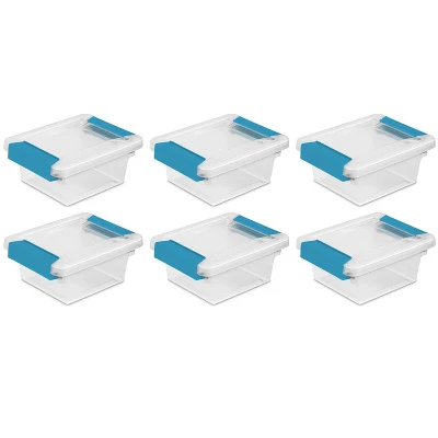 Instantly organize nearly any space in your home, office, or classroom with this pack of Sterilite Plastic Mini Clip Storage Box Container with Latching Lid.Keep your space neat and organized with this set of miniature clip boxes. Designed to be modular, you can create your own storage system for small items that can be difficult to sort and store. With indexed lids, these containers allow for the efficient use of vertical storage space and keep workspaces and living areas open and clean.Durable and stylish, these bins are a great solution for storing and organizing items throughout your home and office, such as paper clips, tacks, arts and craft supplies, or smaller items, like nails and screws in your workshop area. The clear base and lid allow contents to be easily identified from any angle, and the color accent latches ensure that the lid remains secure to the base. The overall assembled dimensions of this item are 6.62 inches long by 5 inches wide by 2.75 inches high.De-clutter your space and create your ideal storage system with the pack of Plastic Mini Clip Storage Box Container with Latching Lid from Sterilite.