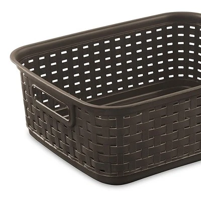 Storage organization shouldn’t be complicated. Simplify your storage with the 8-pack Sterilite Small 11-Inch Long Weave Home Storage Basket Organizer. Measuring 11.5-inches long, 8.75-inches wide, and 4-inches tall, the small weave basket combines the decorative look of wicker with the convenience of easy-to-clean, durable plastic. The weave pattern adds a fashionable touch to every day storage for items kept out in the open. Rectangular in shape, this basket is ideal for reducing clutter on countertops, pantries, bookshelves, entertainment centers and more. When used with other storage baskets, this item can create a customized storage solution that fits any household needs. A reinforced rim provides a great gripping location for lifting and transporting contents. Make your life easier with the 8-pack of Sterilite Small 11-Inch Long Weave Home Storage Basket Organizer.
