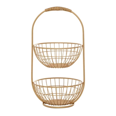 - This chic basket is made with 100% metal extending to a handle and slightly elevated stand